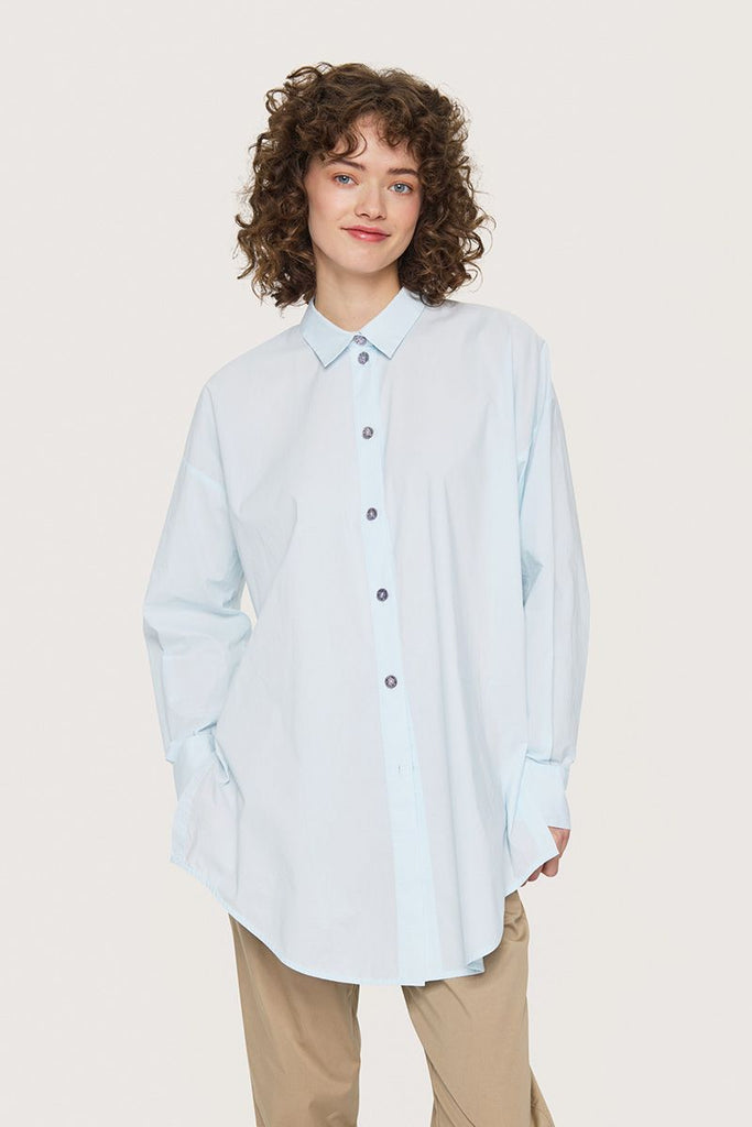 Vild KørvelSkjorte i en lækker, økologisk bomuldskvalitet. Designet er klassisk, og skjorten har slidser i siderne. Den er smuk uanset, om du bærer den løsthængende eller stoppet ned i bukserne. En tidløs skjorte, der kan kombineres med stort set alle underdele.