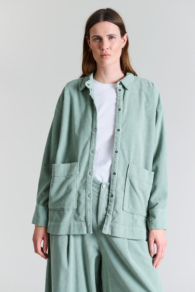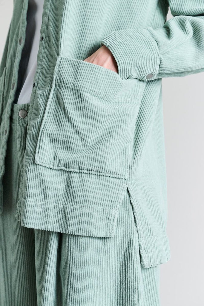 Lang jakke i blød og lækker fløjl. Jakken kan bruges både åbenstående som en jakke og lukket som en skjorte. Tag en T-shirt under, eller lad en rullekravebluse titte frem under jakken. Stylingmulighederne er mange.