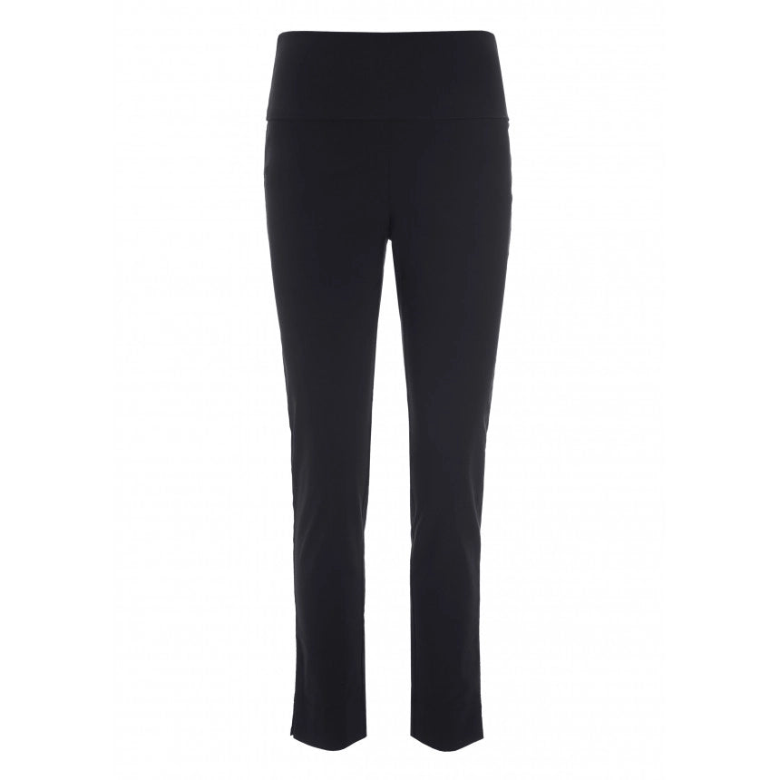 Vild KørvelVores populære basisbukser med tætsiddende pasform og stretch, som sikrer en god bevægelighed. Buksernes brede linning kan trækkes op over maven eller foldes ned for en almindelig taljehøjde. Denne effekt gør dem meget behagelige. Der er en lille slids nederst på buksebenene.