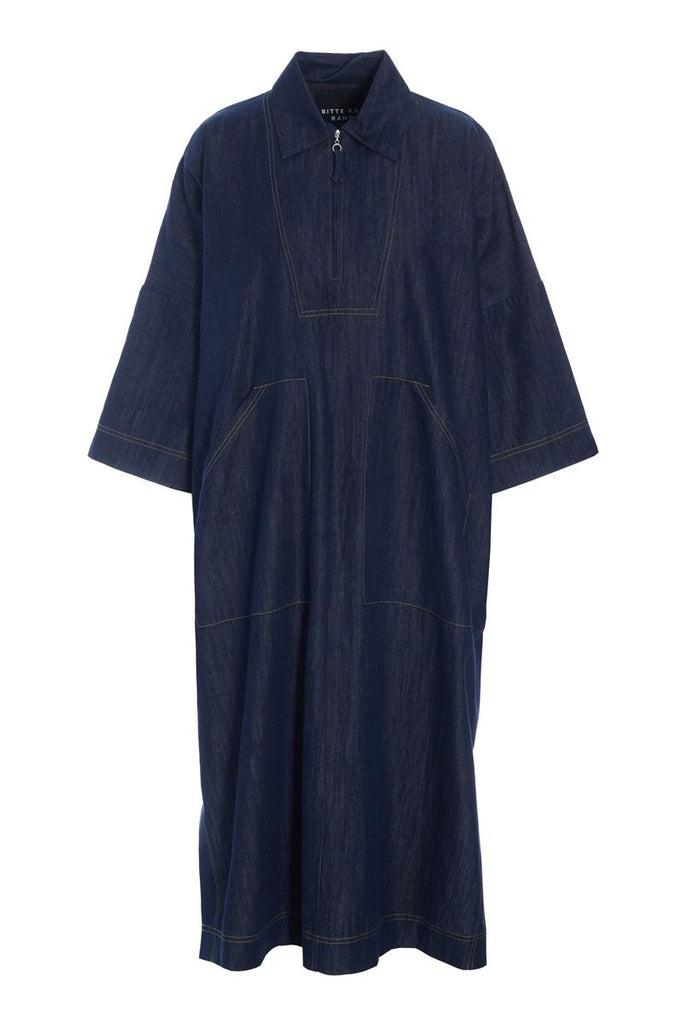Vild KørvelVirkelig lækker denim kjole i et flot oversize snit. Kjolen har på Ún gang et casual og luksuriøst udtryk. Det kan meget nemt blive favoritkjolen i enhver garderobe. Du kan style kjolen på et utal af måde, fx med tørklæde i halsen, en blazer over eller en T-shirt under.
