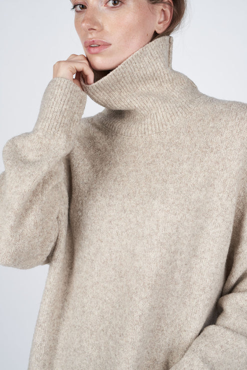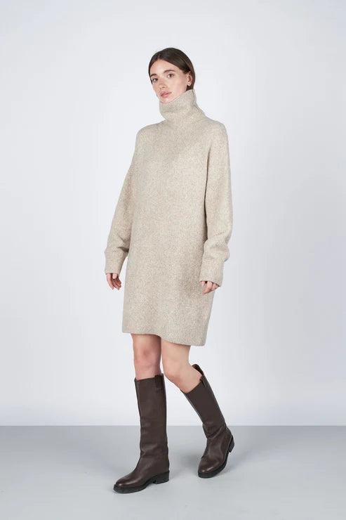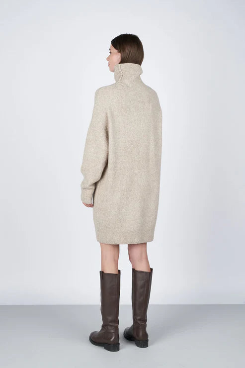 Vild KørvelIvonne Dress er en tidløs og klassisk kjole, som er designet med løs rullekrave i et blødt blend. Kjolen har en rummelig og flatterende pasform, og er derfor et must i enhver garderobe. Den er nem at style med både lange støvler, cowboystøvler eller sneakers. Gå efteråret i møde med denne flotte og klassiske strikkjole, som man nemt kan bruge igen og igen.