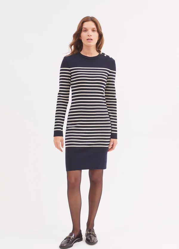 Vild KørvelGrande Marée kjolen er strikket i merinould. Inspireret af ikoniske sømandstrøjer er det et tidløst, elegant stykke for et feminint look.