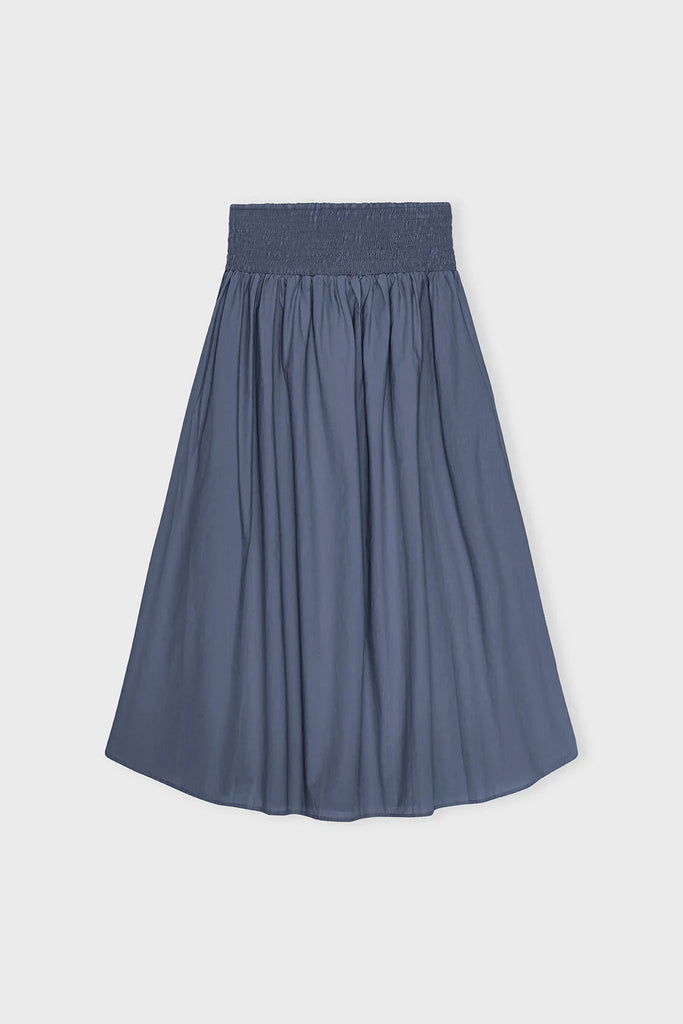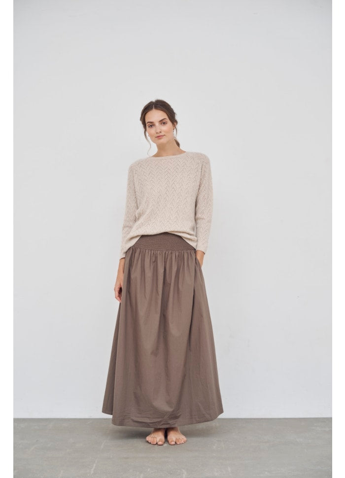 Denne voluminøse nederdel har en behagelig og elastisk smocked linning, der skaber løse gardiner og lommer i sidesømmen.