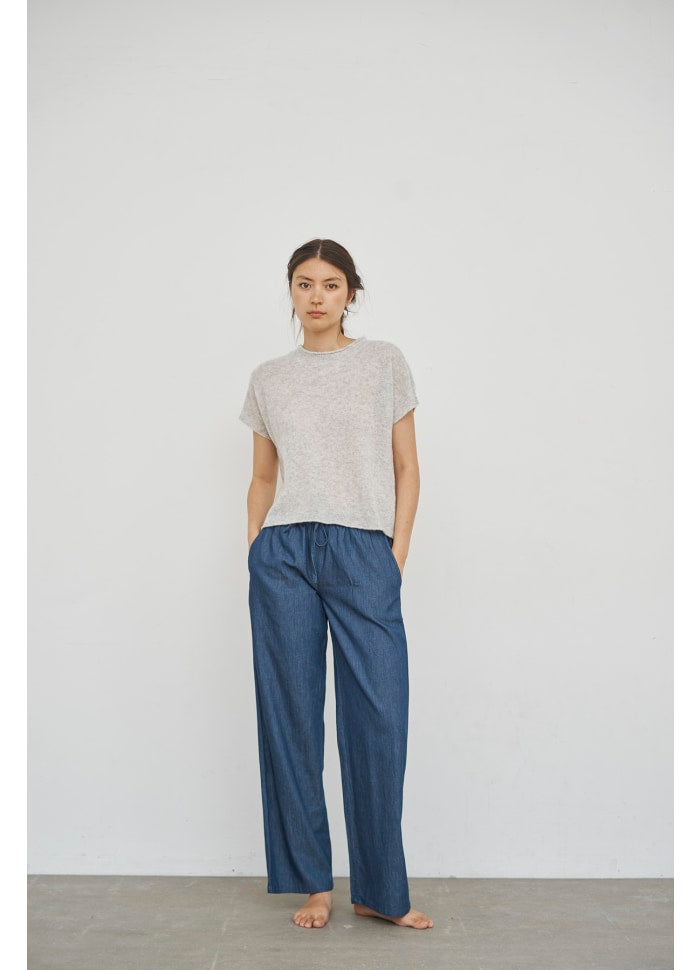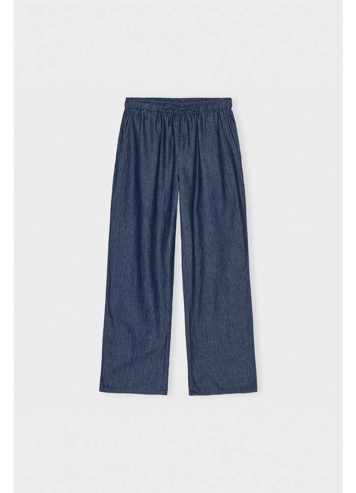 Fremstillet af blød GOTS-certificeret bomuldsdenim, har disse bukser en let løs og behagelig pasform, en blød elastik i taljen med slips og praktiske sidelommer.
