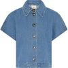 Binca denimkappe er en kort, lige denimkappe med en skarp krave, markeret syning og en struktureret, firkantet silhuet.