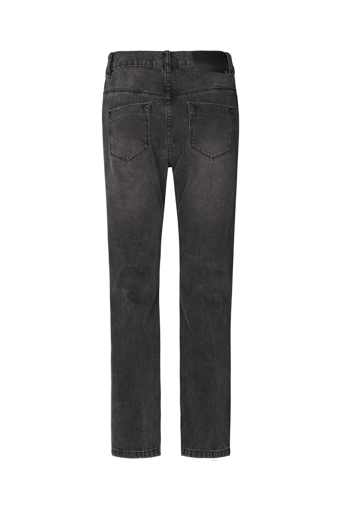 I en vasket sort denim, er dette par defineret af en flatterende skinny pasform med lav talje, små lommer, lynlås, knaplukning og bæltestropper.