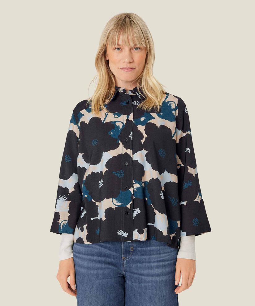 Vild KørvelEn enkel skjorte er uundværlig i garderoben, da den passer til alt. Denne skjorte har et klassisk snit, der giver generøs komfort og får skjorten til at falde løst og flot ned over kroppen. Den knitrende bløde bomuld er skøn at have på, og skjorten byder desuden på trekvartlange ærmer og en feminin drapering på ryggen. Brug den til din yndlingsbuks, en stilfuld nederdel eller under en vest alt efter dit humør.