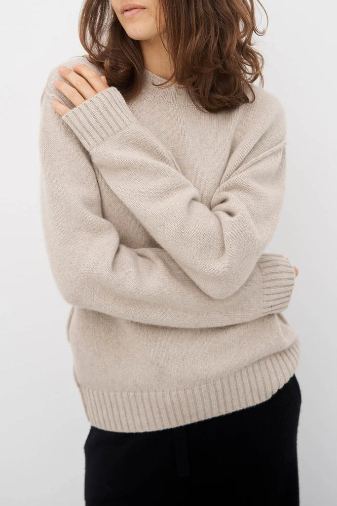 Vild KørvelEn tidløs og chunky sweater fremstillet i Italien af genanvendt cashmere og uld.