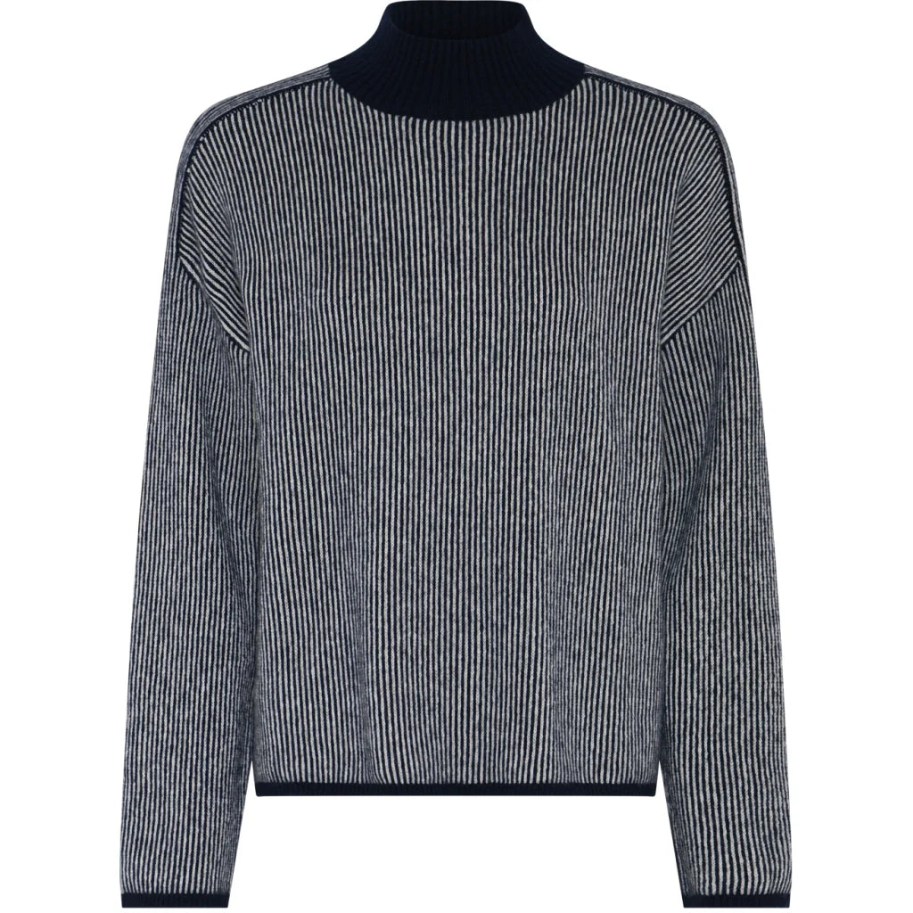 Med sit klassiske fit, rund hals og brede ribkanter, kombinerer Sisse Stripe Knit det velkendte med det moderne. Det navy/off-white stribede mønster er en stilren fortolkning af den maritime strik – tidløs, men med kant.
