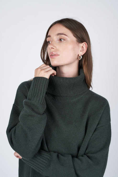 Vild KørvelIrene Jumper er en varm og rummelig strik, som passer ind i enhver efterårsgarderobe. Irene Jumper er designet lidt oversize med en høj rullekrave og flere fine detaljer, som brede ribkanter ved hals, ærmer og rundt i livet, der giver et klassisk og tidløst udtryk.