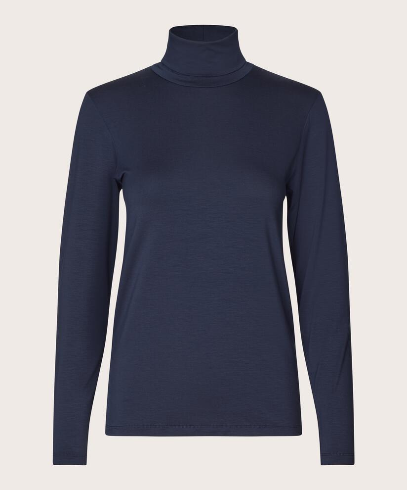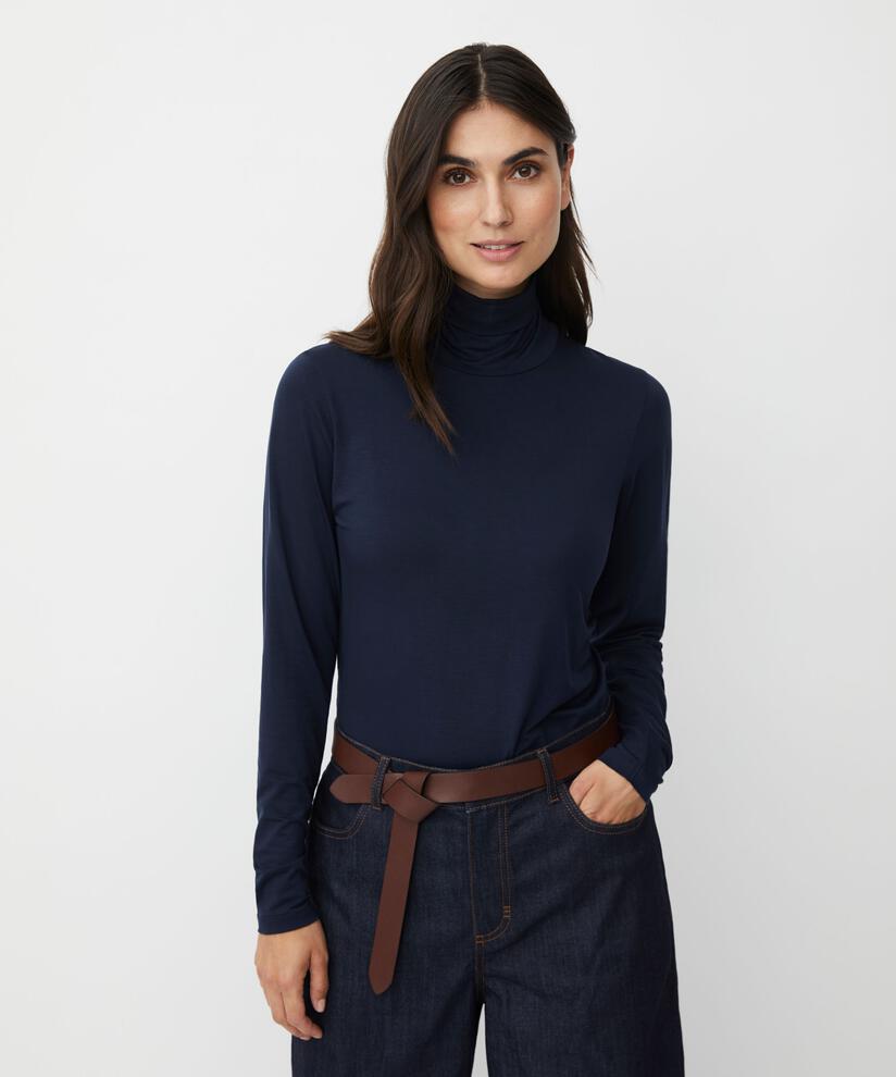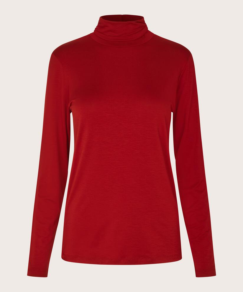 Vild KørvelRullekraven er tilbage – og med god grund. Her er den i en tynd og superblød jerseyversion med lyocell, der er som en drøm at have på. Toppen har en kropsnær pasform med lige linjer, så den fungerer godt som et ekstra lag under en kjole, skjorte eller vest, men du kan også sagtens bruge den alene for et uformelt stilrent look.