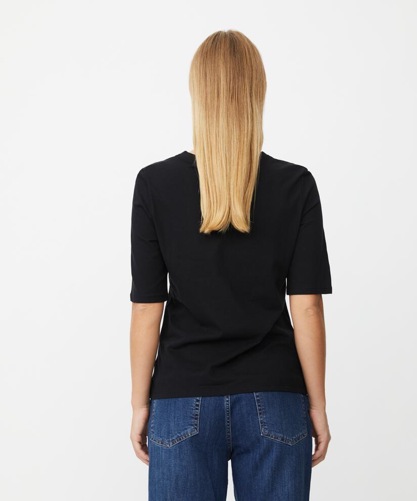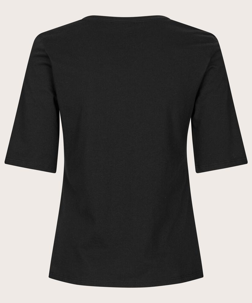 Vild KørvelEn god basic T-shirt er uundværlig i garderoben – og denne version bliver hurtigt en favorit. Den er skabt i smørblødt jersey med masser af stretch og har et kropsnært snit, der gør den perfekt til lag-på-lag. Brug toppen under en skjorte, cardigan eller blazer – eller alene til jeans for et simpelt, stilfuldt look, du vil vende tilbage til igen og igen.